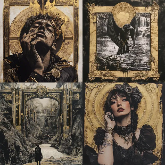 Сила этого стиля заключается в способности передавать ощущение величия и таинственности, что делает его идеальным для обложек книг, оформления альбомов и модных фотосессий. Однако его акцент на орнаменте может затмить более тонкие темы, ограничивая его универсальность в минималистичных или фотореалистичных контекстах.