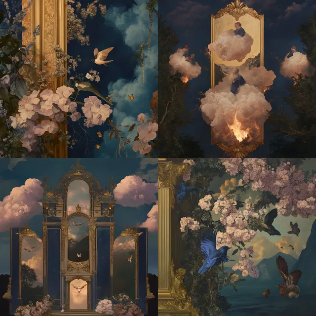 Этот стиль отличается пышностью и обилием деталей. Он завораживает сложными композициями и роскошными текстурами. Золотистые акценты и цветочные мотивы вплетаются в сказочные пейзажи, создавая неземную атмосферу, которая одновременно кажется мистической и чарующей.