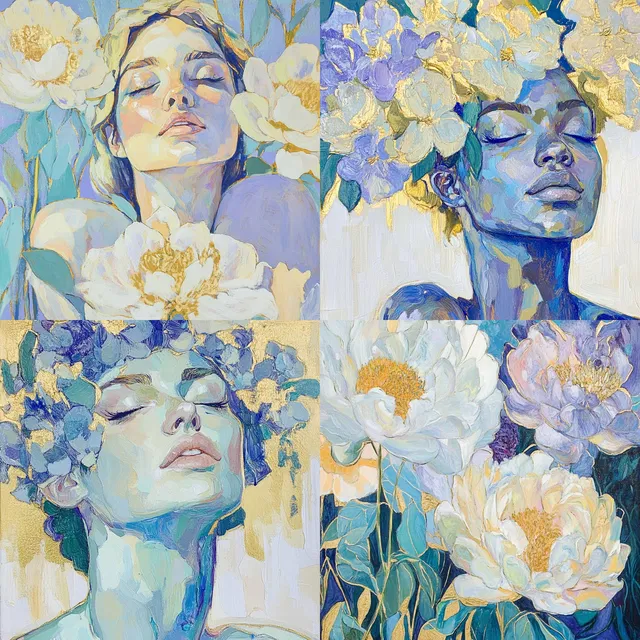 Этот стиль — симфония элегантности ар-нуво и замысловатости символизма — очаровывает своими декоративными деталями и насыщенными текстурами. Пастельные оттенки и золотые акценты создают светящееся сияние, придавая каждому изделию сказочное качество.