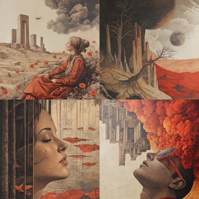 Этот стиль отличает сложная детализация и изысканное украшение, с особым акцентом на богатство текстур и многослойность композиций. Тона сепии и землистые оттенки создают тёплую, ностальгическую атмосферу, часто вызывая меланхоличные или мечтательные настроения.