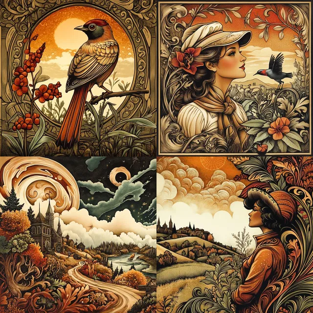 Стиль неизменно богат украшениями и прекрасно подходит для создания визуально захватывающих композиций в самых разных областях — от книжной иллюстрации до моды. Однако его склонность к декоративной сложности может затмить более простые, минималистичные контексты, ограничивая универсальность применения в некоторых сферах.