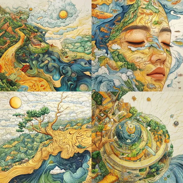 Замысловатые линии и органические формы определяют этот стиль, создавая гармоничное сочетание природных и человеческих элементов. Земляные тона и плавные композиции создают сказочные сюжеты, напоминающие об искусстве модерна. Хотя стиль отлично подходит для передачи мифических и экологических тем, его сложность может затмить более простые сюжеты, ограничивая его универсальность в минималистичных контекстах. Он идеально подходит для повествования и экологического искусства, но может испытывать трудности с фотореализмом и технической точностью.