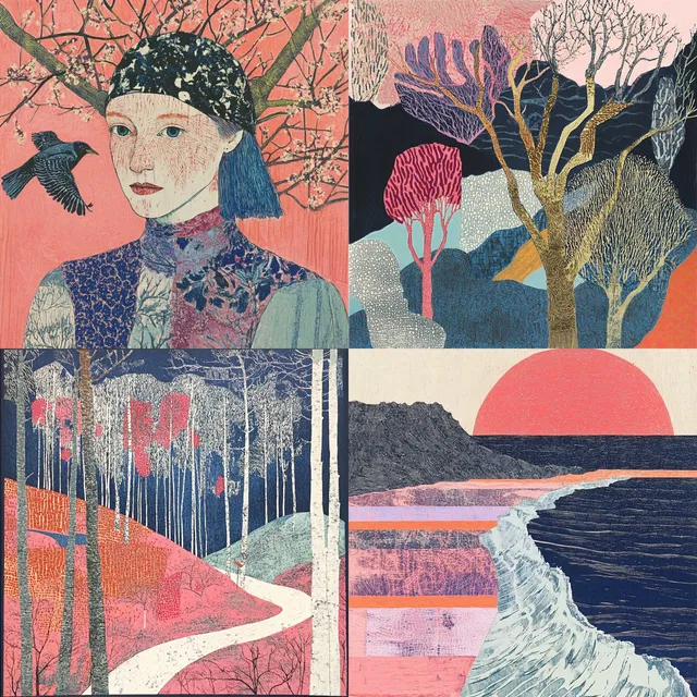 Текстурная насыщенность и многослойные композиции определяют этот стиль, объединяя органические формы с символическими образами. Пастельные тона и землистые оттенки создают сказочную атмосферу, вдохновлённую ар-нуво и символизмом. Замысловатые линии и детализированные текстуры вызывают ощущение неземной красоты, а темы, связанные с природой, перекликаются с фольклором и мифологией.