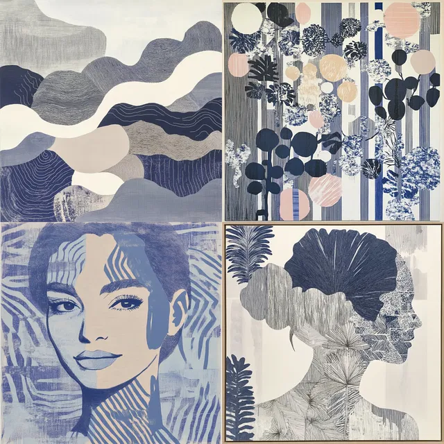 Этот стиль отличается богатством текстур и монохромной элегантностью. Он прекрасно подходит для создания многослойных композиций со сложными узорами и едва заметными градиентами. Визуальный рассказ отмечен гармоничным сочетанием органических форм и геометрической точности, что часто создаёт спокойную атмосферу.