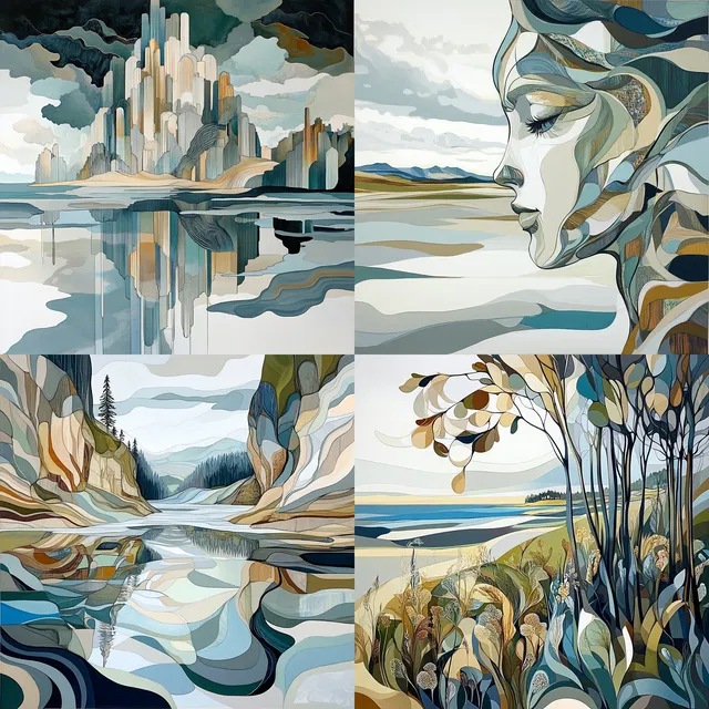 Этот стиль определяют плавные композиции и органическая абстракция. В нём гармонично сочетаются природные мотивы и землистые тона. Текстурированные поверхности и плавные линии создают спокойную, умиротворяющую атмосферу, напоминающую об искусстве ар-нуво и скандинавском дизайне.