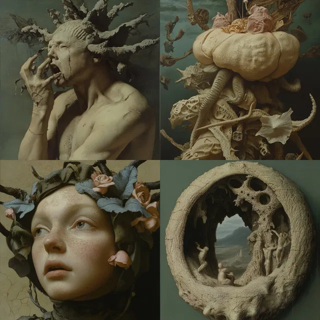 Сила этого стиля заключается в его способности вызывать потустороннее настроение через детальное изображение и символические образы. Скульптурные формы и органические мотивы придают уникальную глубину как двухмерным, так и трёхмерным композициям, что делает его идеальным для фэнтези-иллюстраций и концепт-арта.
