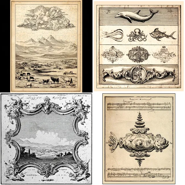 Преобладают сложные гравюры с любовью к витиеватым деталям и исторической достоверности. В основе стиля — тона сепии и монохромные палитры, которые создают ностальгическую атмосферу, напоминающую старинные иллюстрации. Тщательно прорисованные линии и сложные композиции вызывают ощущение вневременности, вдохновлённое влиянием барокко, рококо и викторианского стиля.