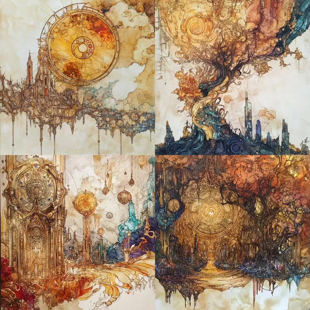 Замысловатые линии и декоративные элементы этого стиля создают уникальное визуальное повествование, которое одновременно кажется и историческим, и потусторонним. Хотя этот стиль процветает в фэнтези и концептуальном искусстве, его отклонение от фотореализма может ограничить его применение в более реалистичных контекстах.