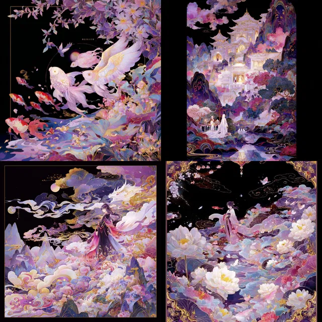 Этот стиль — настоящая визуальная симфония изысканных деталей и затейливых украшений. Он сплетает узор фантазии и мифов. Насыщенные пастельные тона и золотые акценты создают пышную, сказочную атмосферу. Композиции отличаются глубиной и сложностью.