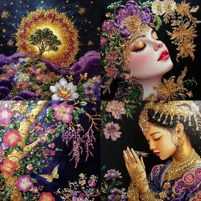 Стиль отличается созданием роскошных, витиеватых образов, напоминающих модерн и символизм, с акцентом на декоративное богатство и искусное мастерство. Он прекрасно подходит для ситуаций, где требуется роскошь и замысловатый дизайн, но может быть неудобен в минималистичном или фотореалистичном контексте.