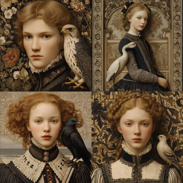 Этот стиль характеризуется замысловатыми деталями и богатыми украшениями, вдохновлёнными такими историческими художественными течениями, как Ренессанс и Барокко. Композиции насыщены сложными узорами и роскошными текстурами, что создаёт ощущение богатства и величия. Мягкое освещение и приглушённые тона способствуют созданию ностальгической и вневременной атмосферы, напоминающей об элегантности европейской аристократии.