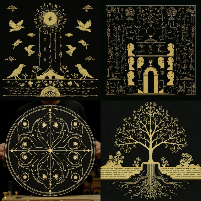 Композиции демонстрируют симметричный баланс, украшены витиеватыми элементами и декоративными мотивами, которые вызывают ощущение роскоши. Стиль превосходно создаёт сложные узоры и детализированные линии, предлагая уникальное сочетание исторической и современной эстетики.