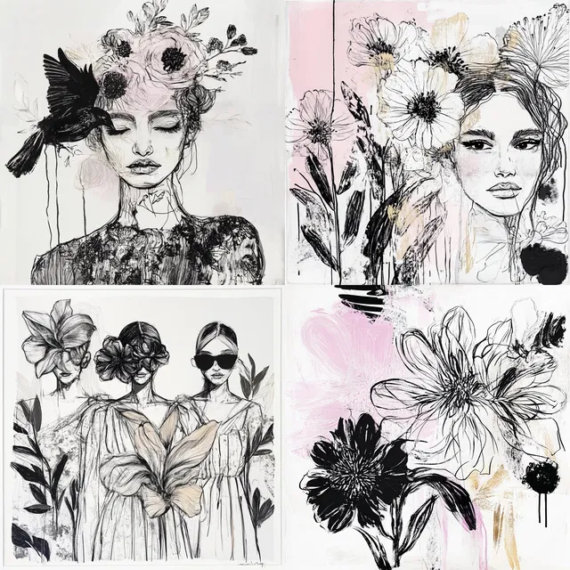 Этот стиль прекрасно подходит для модной иллюстрации и редакционного дизайна. В нём можно увидеть ботанические мотивы и тонкие выражения эмоций человека. Однако в фотографическом контексте может не хватать фотореализма, а в 3D-визуализации — глубины.
