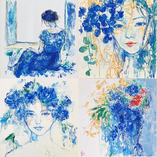 Отличительный стиль, характеризующийся живописными и импрессионистическими чертами. В нём преобладают синие оттенки и выразительная манера письма кистью. Этот стиль отлично подходит для создания фактурных поверхностей и динамичных композиций. Часто используются органические формы и плавные линии.