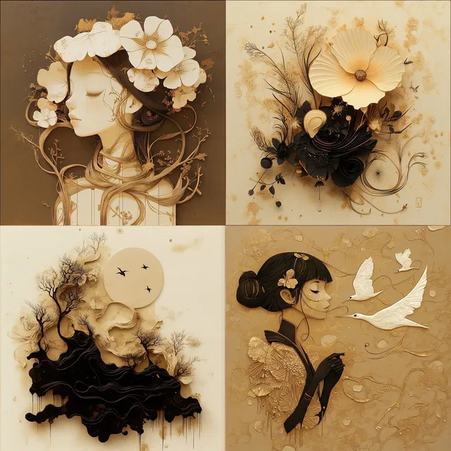 Этот стиль завораживает своей воздушностью и сказочностью. Он очаровывает замысловатой техникой вырезания из бумаги, создавая многослойные, фактурные и объёмные композиции. Тёплая палитра в оттенках сепии вызывает чувство ностальгии, напоминая об искусстве ар-нуво и югендстиля.