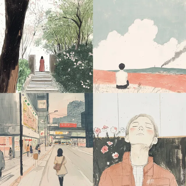 Этот изящный и воздушный стиль передаёт ощущение мечты через мягкие пастельные тона и тонкие текстуры. Он отлично создаёт ностальгическую атмосферу, фокусируясь на темах для размышлений и самоанализа. Использование плавных контуров и приглушённых цветов придаёт каждому произведению поэтичность и причудливость.