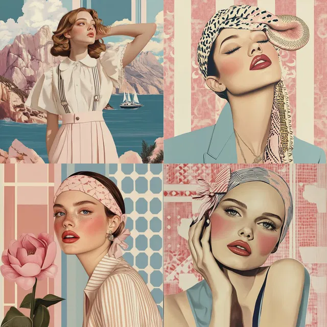 Пастель, деко и фьюжн — стиль Pastel Deco Fusion очаровывает своей иллюстративностью и геометрическими формами, сочетая в себе элементы ар-деко с современными тенденциями. В этом стиле используются пастельные цвета и мягкое освещение, чтобы вызвать ностальгию, но при этом сохранить футуристический оттенок. Его структурированный дизайн и чистые линии создают сбалансированное визуальное повествование, хотя иногда ему не хватает глубины в фотореалистичных контекстах.