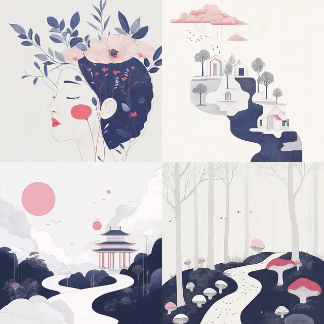 Пастельная минималистичная элегантность передаёт суть простоты через тонкий баланс приглушённых цветов и геометрических форм. Стиль отличается умением создавать безмятежные композиции, сочетая модернистские влияния с мягкой, воздушной эстетикой.
