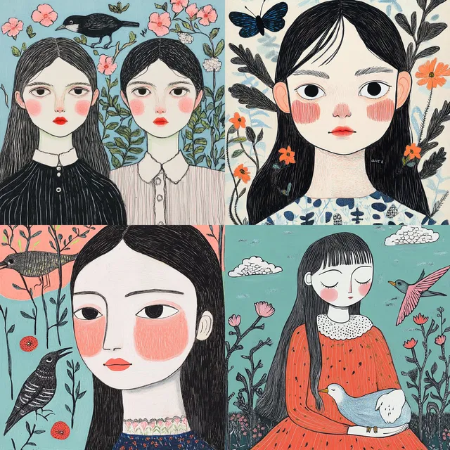 Этот стиль отличается наивной эстетикой и народными мотивами. Он очаровывает своим детским шармом и причудливыми элементами. Пастельные тона и мягкие контрасты создают атмосферу сна, а текстурированные линии и замысловатые детали добавляют глубины.