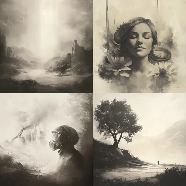 В этом стиле преобладают эфемерные пейзажи и загадочные фигуры. Характерны мечтательная дымка и атмосферная глубина. Нежные монохромные тона и мягкие градиенты создают таинственную атмосферу шёпота. Плавные переходы и призрачное свечение усиливают романтическую и пасторальную ностальгию.