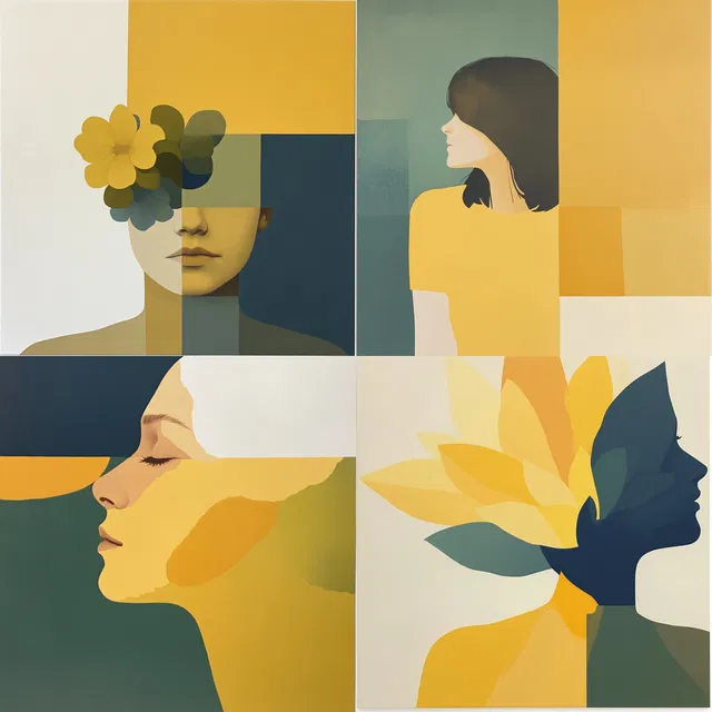 В этом стиле преобладает геометрическая абстракция, для которой характерны минималистичные композиции и яркие цветовые контрасты. Упрощённые формы и чёткие линии создают спокойную атмосферу, а приглушённые жёлтые и нежно-зелёные оттенки вызывают чувство умиротворения.