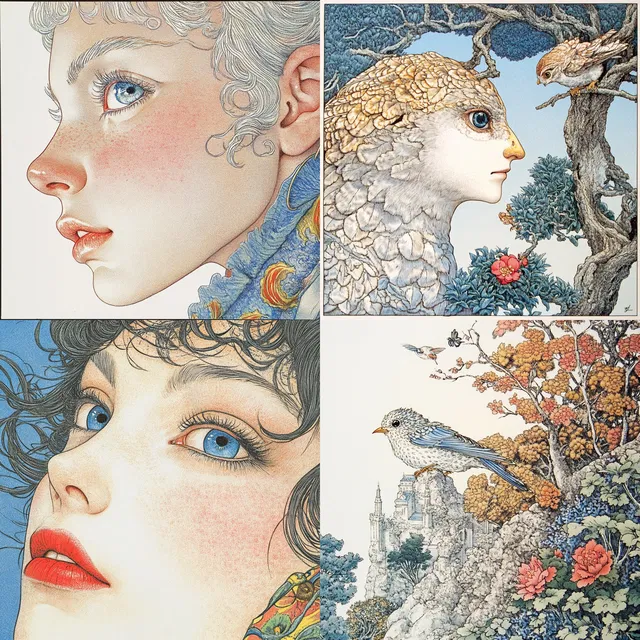 Замысловатые линии и тонкие текстуры определяют этот стиль, в котором переплетаются влияние модерна и элементы причудливой фантазии. Пастельные оттенки и мягкие градиенты создают атмосферу мечты, а детальные композиции напоминают иллюстрации из сказок.