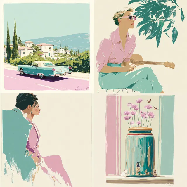 Этот стиль хорошо подходит для редакционного дизайна и модной иллюстрации, но может испытывать трудности с фотореализмом и сложными деталями. Зато он отлично передаёт суть классической Америки и ретрофутуризма.