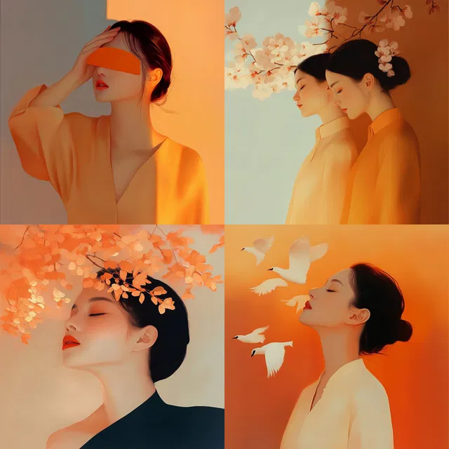 В этом визуальном стиле ярко проявляется взаимодействие тёплых палитр и мягких градиентов, что создаёт спокойную и воздушную атмосферу в различных темах. Использование плавных переходов и тонких текстур усиливает ощущение чего-то сказочного, а включение органических форм и плавных линий добавляет ощущение гармонии и баланса.