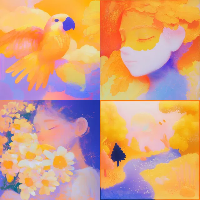 Доминируют яркие пастельные градиенты, которые создают сказочную и воздушную атмосферу во всех образцах. Стиль отличается мягкими переходами и плавными изгибами, благодаря чему получается сюрреалистичное и причудливое визуальное повествование. Преобладают органические формы и текучие очертания с акцентом на округлые и игривые элементы.