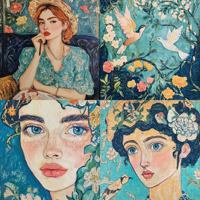 Этот стиль отличается насыщенной текстурой и замысловатыми деталями. Он вобрал в себя элементы модерна и персидского искусства, создавая яркое полотно цвета и формы. Использование насыщенных оттенков синего и золотого в сочетании со сложными цветочными мотивами придаёт каждому изделию неземное, сказочное качество.