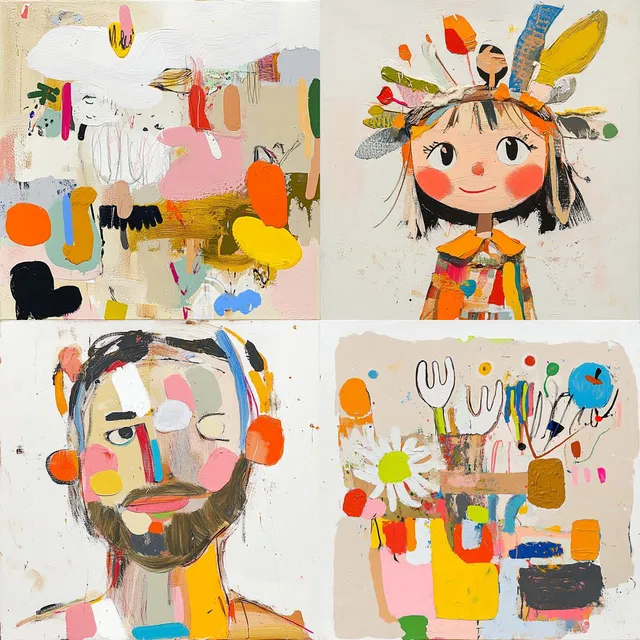 Каждый элемент насыщен текстурами, которые добавляют глубину и сложность, а использование пастельных тонов смягчает общее впечатление, обеспечивая гармоничный баланс. Сила этого стиля заключается в его способности вызывать эмоции и воображение, что делает его идеальным для проектов, направленных на исследование креативности и инноваций.