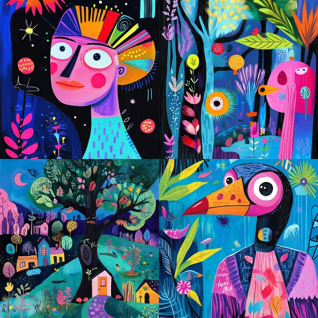 Любовь этого стиля к насыщенным палитрам и сюрреалистичным композициям хорошо подходит для детских книг, игривого брендинга и причудливого текстиля. Однако его яркость может затмить более тонкие темы, а отсутствие фотореализма может ограничить его применение в более традиционных контекстах.