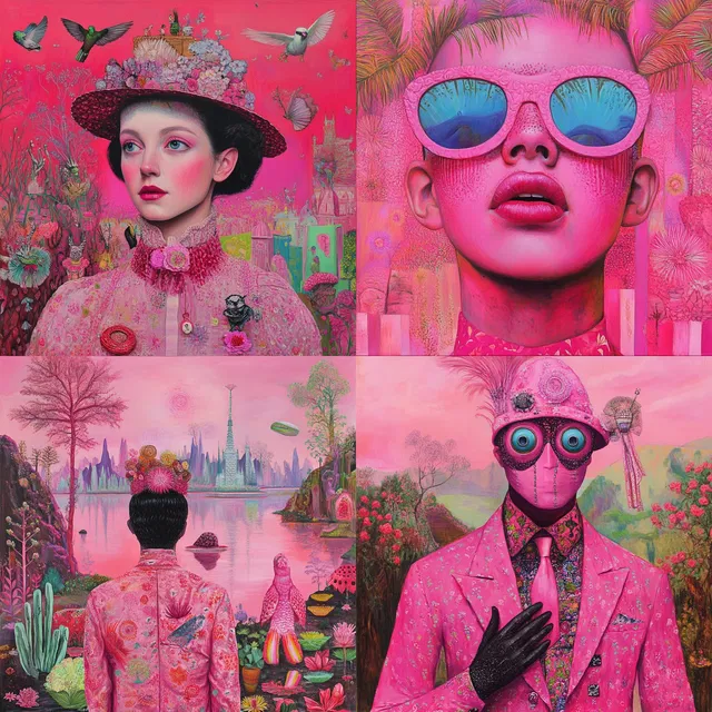 Этот стиль выполнен в яркой розовой палитре. Он объединяет сюрреализм с причудливыми элементами, создавая сказочные композиции, которые очаровывают зрителя. Замысловатые детали и витиеватые узоры вызывают ощущение игривой фантазии, а сюрреалистичные формы и конструкции бросают вызов привычному восприятию.
