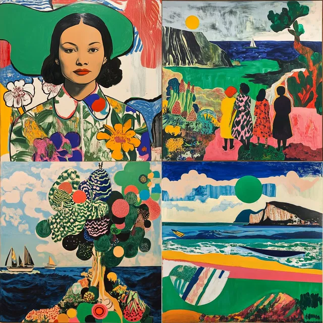 Стиль Vibrant Pop Fusion отличается использованием ярких цветов и графических элементов, создавая динамичный и энергичный визуальный образ. Под влиянием поп-арта и эстетики середины XX века в нём применяются структурированные геометрические формы и игривые узоры.