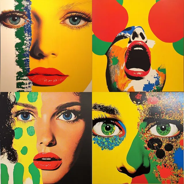 Смело используя яркую и динамичную эстетику поп-арта, этот стиль характеризуется насыщенными цветами и графическими композициями. Применение геометрических узоров и абстрактных рисунков создаёт визуально захватывающий эффект, напоминающий работы Энди Уорхола и Роя Лихтенштейна.
