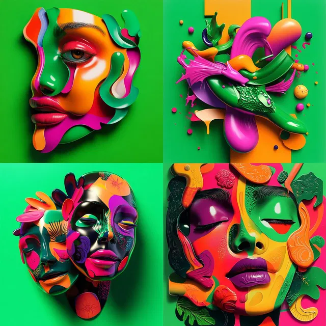 Яркая палитра и отражающие поверхности привлекают внимание, но стилю может не хватать тонкости и реализма, что делает его менее подходящим для фотореалистичных или сдержанных контекстов. Он идеально подходит для редакционных материалов, моды и абстрактного искусства, где главное — смелость и креативность.