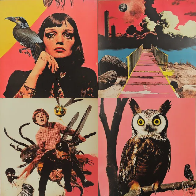 В этих композициях доминируют яркие, насыщенные цвета, которые создают поразительный визуальный эффект, одновременно игривый и сюрреалистичный. Использование техник коллажа и монтажа, напоминающих поп-арт и дадаизм, добавляет сложности и интриги, побуждая зрителей исследовать сопоставление элементов.