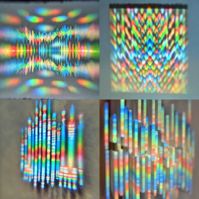 Хроматические искажения и оптические иллюзии доминируют, создавая калейдоскопическое визуальное восприятие. Стиль определяют яркие спектральные и призматические эффекты, которые придают изображению сюрреалистичность и сказочность. Эфирное свечение и психоделические образы вызывают ощущение погружения в потусторонний мир.