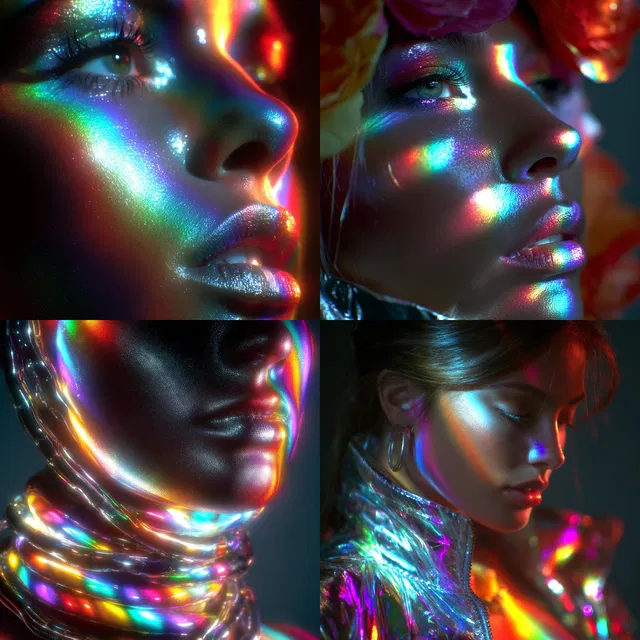 В этом стиле главенствуют призматические отражения и переливчатое сияние, которые создают сюрреалистичную и эфемерную атмосферу в различных контекстах. Здесь постоянно присутствуют отражающие поверхности и световые акценты, что придаёт визуалам футуристичность и авангардность.