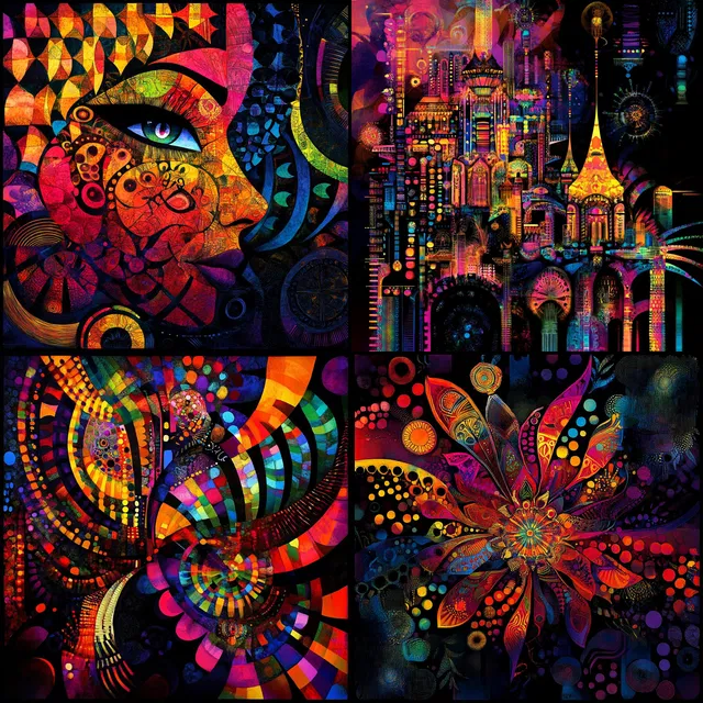 Этот стиль — яркое сочетание психоделических элементов и влияний ар-нуво. Он завораживает своей детальной проработкой и яркой палитрой цветов. Композиции в этом стиле насыщены геометрической точностью и символическими образами, которые создают атмосферу сна.