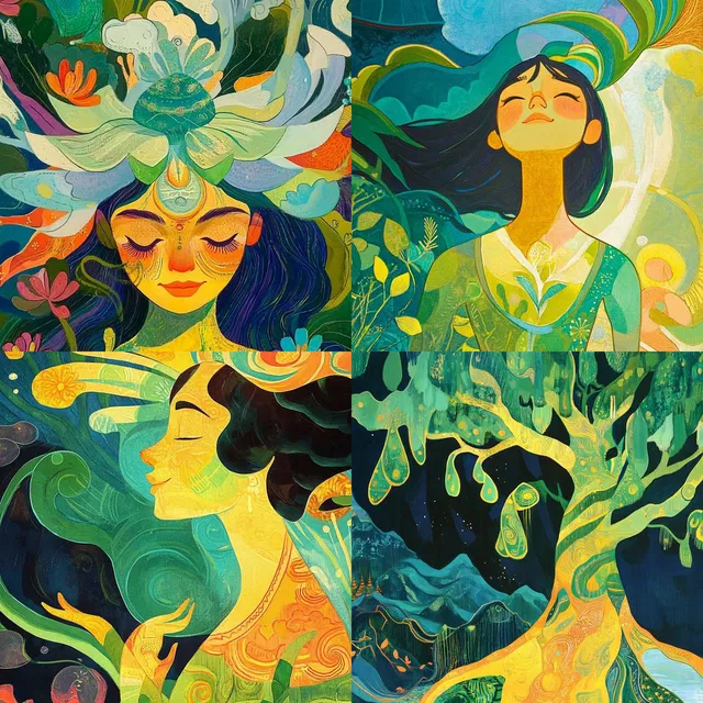 Этот стиль отличается яркими красками и плавными линиями, которые создают динамичные композиции, вызывающие ощущение чуда и фантазии. Он изобилует декоративными элементами, напоминающими модерн и психоделические течения. Взаимодействие природы и технологий, а также мифические и сюрреалистические темы создают насыщенное визуальное повествование.