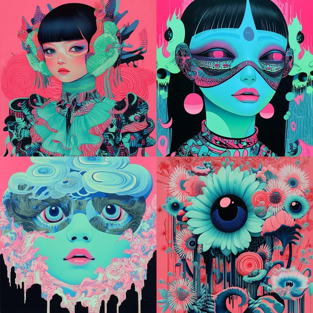 Этот стиль отличается яркими сюрреалистичными образами и замысловатыми деталями. В нём сочетаются психоделические и футуристические элементы с неоновой палитрой цветов. Композиции насыщены органическими формами и текучими очертаниями, что создаёт атмосферу сна, одновременно завораживающую и загадочную.