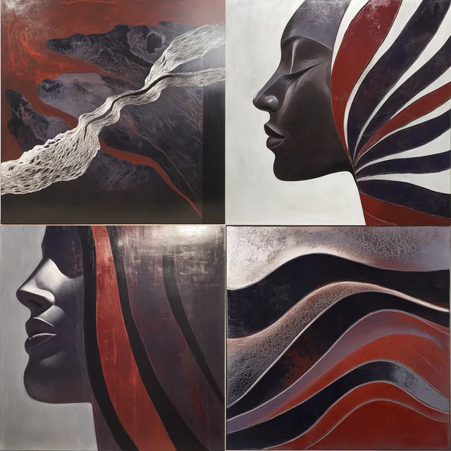 В этом стиле преобладают плавные, органические формы и приглушённая, землистая палитра. Он отличается гармоничным сочетанием абстрактных и репрезентативных элементов. Изогнутые линии и текстурная глубина создают ощущение движения и ритма, напоминая стили модерн и футуризм.