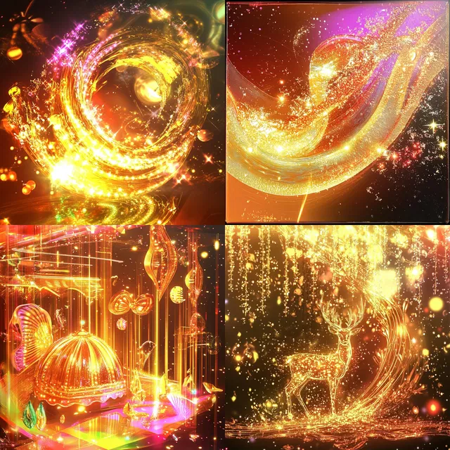 Мерцающие текстуры и замысловатые узоры вызывают ощущение небесной атмосферы, напоминая стили модерн и символизм. Стиль отлично подходит для визуального повествования: лучистые фигуры и светящиеся пейзажи завораживают зрителя.