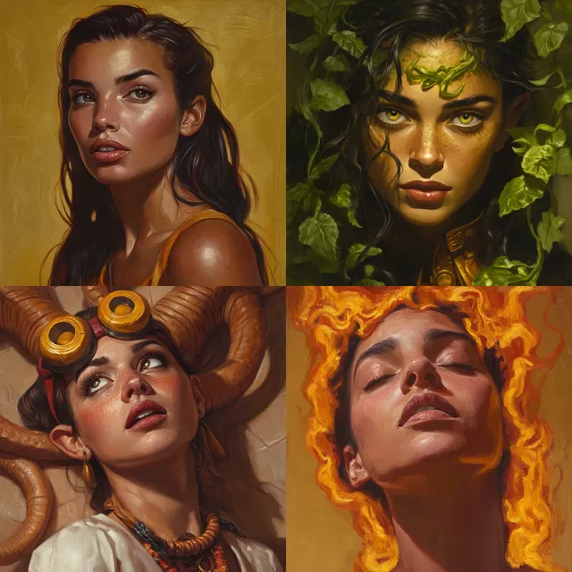 Этот стиль превосходно передаёт реалистичные портреты и фантастические сцены, сочетая реализм с элементами воображения. Использование тёплых тонов и насыщенных цветов создаёт яркую, светящуюся эстетику, которая усиливает сказочность изображаемых объектов.