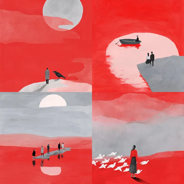 Этот стиль ярко воплощает минималистичную эстетику, в которой ключевую роль играет взаимодействие ярких цветовых блоков и геометрической точности. Преобладание насыщенной красной палитры вызывает ощущение модернистской абстракции, напоминающей конструктивизм и супрематизм.