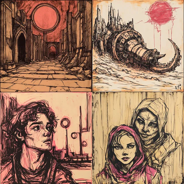 Использование приглушённых тонов и монохромной палитры придаёт ностальгическое, сказочное качество, а нарисованная вручную текстура и вид, напоминающий набросок, вызывают ощущение художественной подлинности.