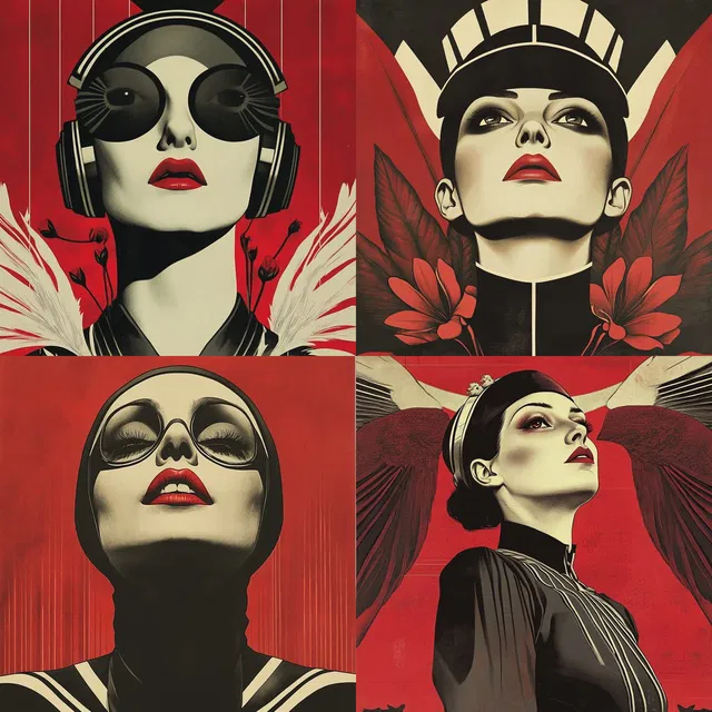Визуальный нарратив часто сосредоточен на темах футуризма и индустриализации. Среди сюжетов можно встретить как стилизованных персонажей, так и абстрактные формы, и футуристические городские пейзажи.