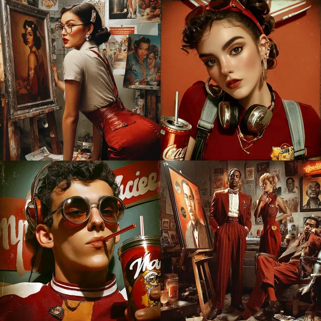 Преобладают насыщенные текстуры и тёплые тона, которые сочетают в себе элементы ретрофутуризма и ностальгическую атмосферу. Стиль отличается умением создавать кинематографические композиции, вдохновлённые ар-деко и влиянием середины XX века. Эффектное освещение и детальная проработка элементов усиливают визуальное повествование, хотя иногда могут возникать сложности с достижением фотореализма.