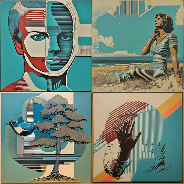 Для этого стиля характерна геометрическая точность и чёткие контуры. Он объединяет эстетику ретро с футуристическими темами. Использование приглушённых бирюзовых и контрастных цветов создаёт яркую палитру, которая одновременно вызывает ностальгию и устремлена в будущее.